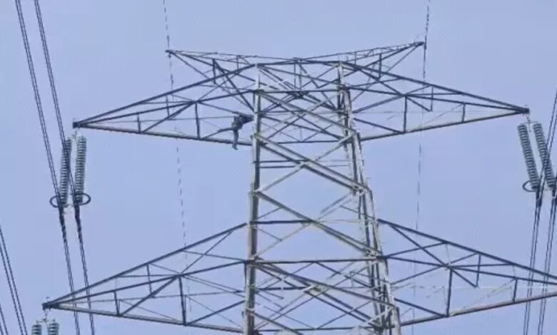 धान बिक्री न होने से परेशान किसान हाईटेंशन टावर पर चढ़ा: 120 फीट ऊंचाई पर 3 घंटे बैठा रहा, पुलिस ने उतारकर किया गिरफ्तार