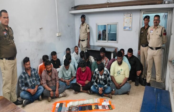 रायपुर। राजधानी के ट्रांसपोर्ट नगर स्थित पार्किंग नंबर-6 में जुआ खेल रहे 19 आरोपियों को पुलिस ने रंगे हाथ गिरफ्तार किया है। खमतराई थाना पुलिस की रेड में कुल 2,52,520 रुपए नगद और 20 मोबाइल फोन सहित कुल 5,02,520 रुपए का माल जब्त किया गया है।