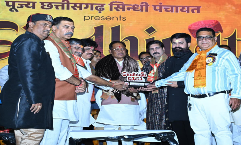 रायपुर। राजधानी रायपुर में ‘पूज्य छत्तीसगढ़ी सिंधी पंचायत’ द्वारा आयोजित भव्य कार्यक्रम “सिंधीयत जो मेलो” में मुख्यमंत्री विष्णु देव साय शामिल हुए।