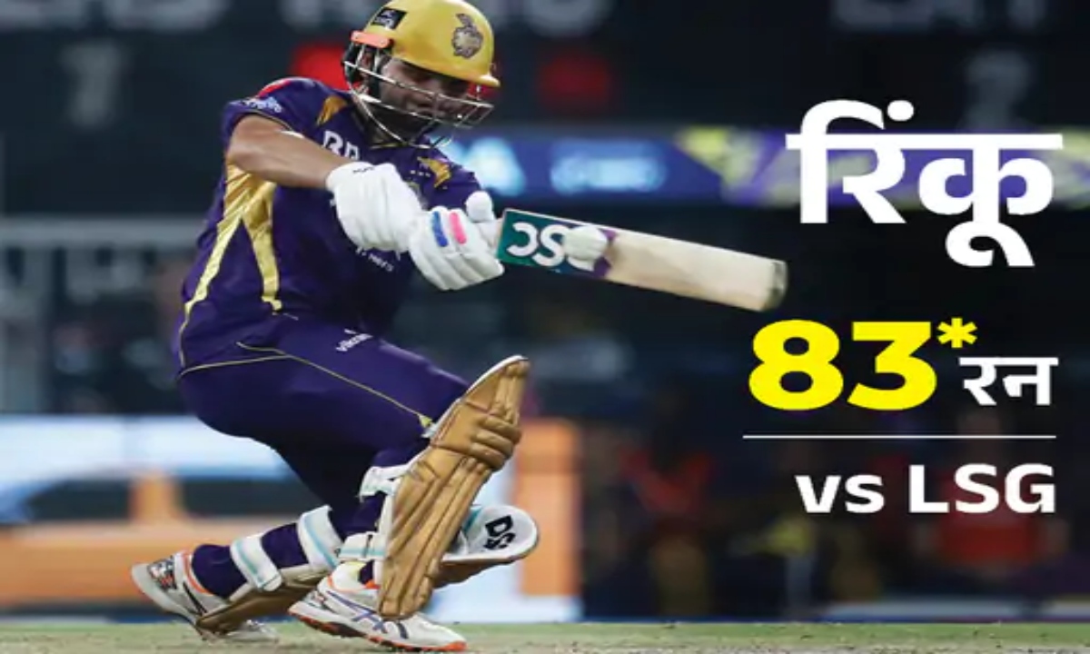 कोलकाता की ओर से रिंकू सिंह ने शानदार बल्लेबाजी करते हुए 51 गेंदों पर नाबाद 83 रन बनाए। उनकी इस पारी में 7 चौके और 5 छक्के शामिल रहे। खास बात यह रही कि आखिरी ओवर में उन्होंने लगातार 4 छक्के लगाकर टीम को मजबूत स्कोर तक पहुंचाया। वहीं फील्डिंग में भी रिंकू ने कमाल दिखाते हुए 5 शानदार कैच लपके।