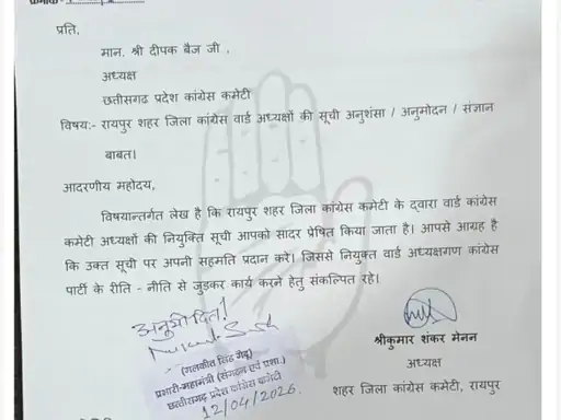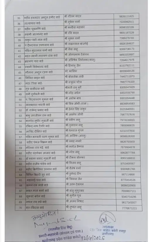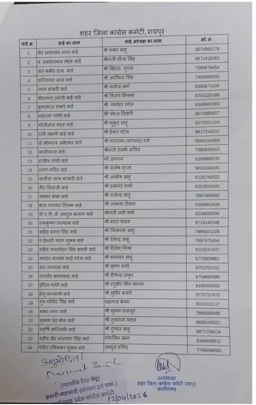 रायपुर कांग्रेस में विवाद के बाद नई सूची जारी: 19 वार्ड अध्यक्ष बदले, अब मिली मंजूरी